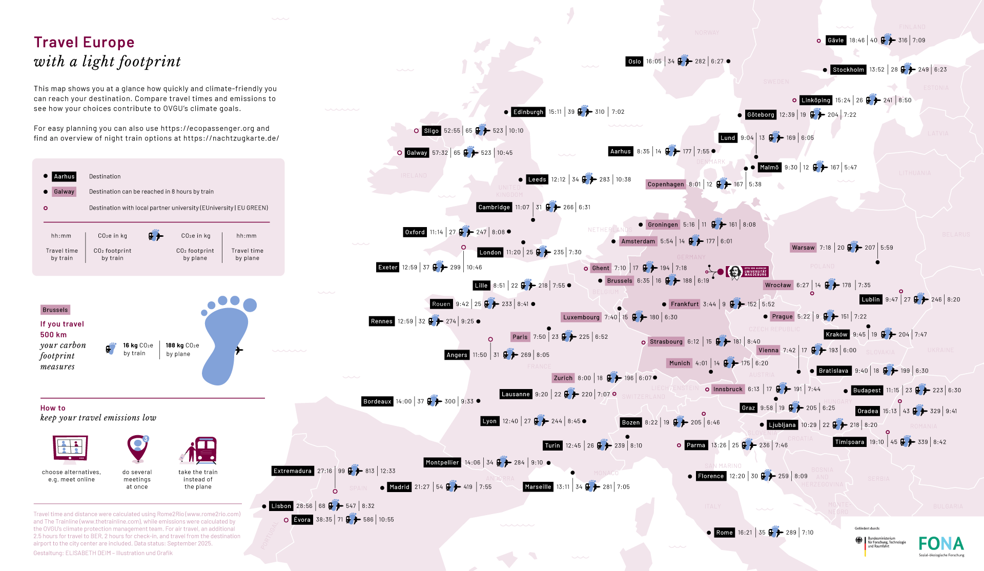 Business trips are also part of everyday university life at OVGU—they are important for research, teaching, and collaboration. At the same time, they account for a significant portion of OVGU's CO2 emissions. In addition to travel distance, the choice of transport plays a particularly important role in determining a trip’s climate impact.